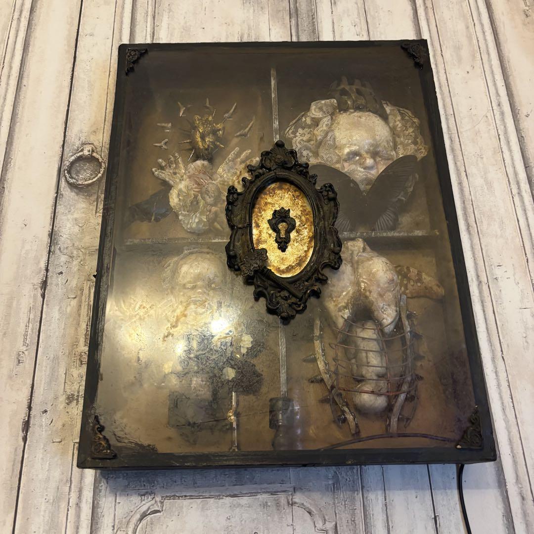 少女、解剖、破壊、誕生、標本などの異なるモチーフを4つのセクションに分け統合化したアッサンブラージュ作品になります。
