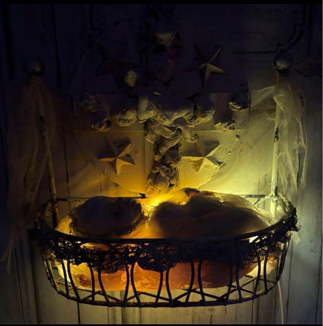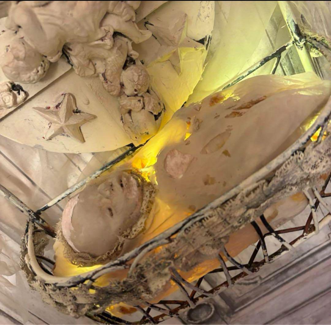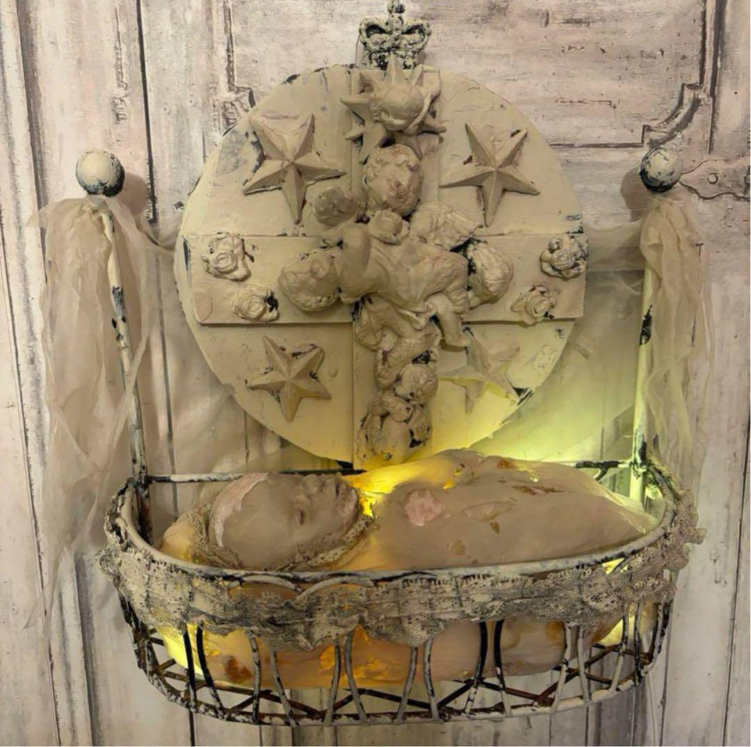 豪華な装飾のベットで眠る赤子は楽しい夢を見てるのか夢魔と寄り添い眠りについているかはさておき、壁掛け据置両対応LED照明内蔵オブジェになります。