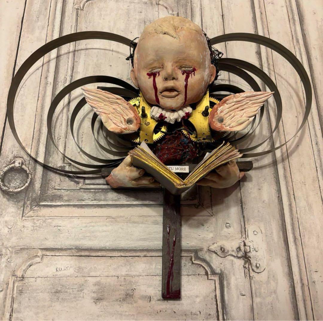 孤独と涙そして神からのメッセージを受け取るを天使をイメージした壁掛けオブジェになります。