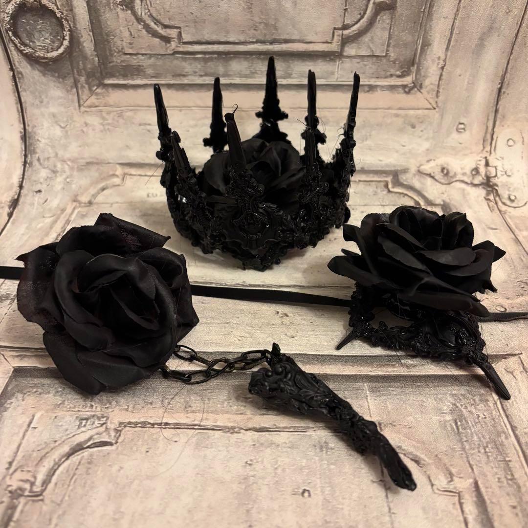 王冠ヘッドドレス+眼帯+リングの3点セットになりま