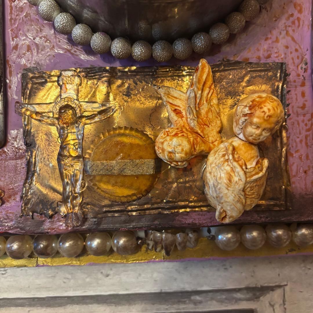 退廃的な美しさと、時代を超越した聖性が融合した唯一無二のコラージュ/ミクストメディア作品です