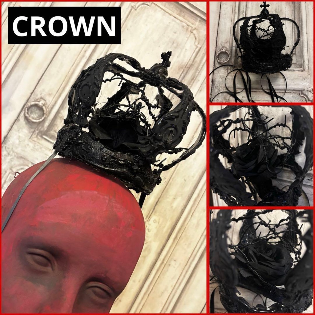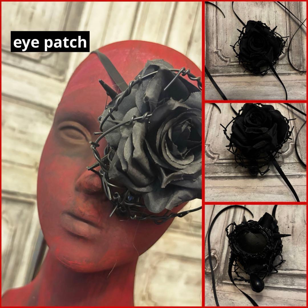 黒薔薇モチーフのCROWNヘッドドレス、チョーカー、眼帯のお得な3点セットです。