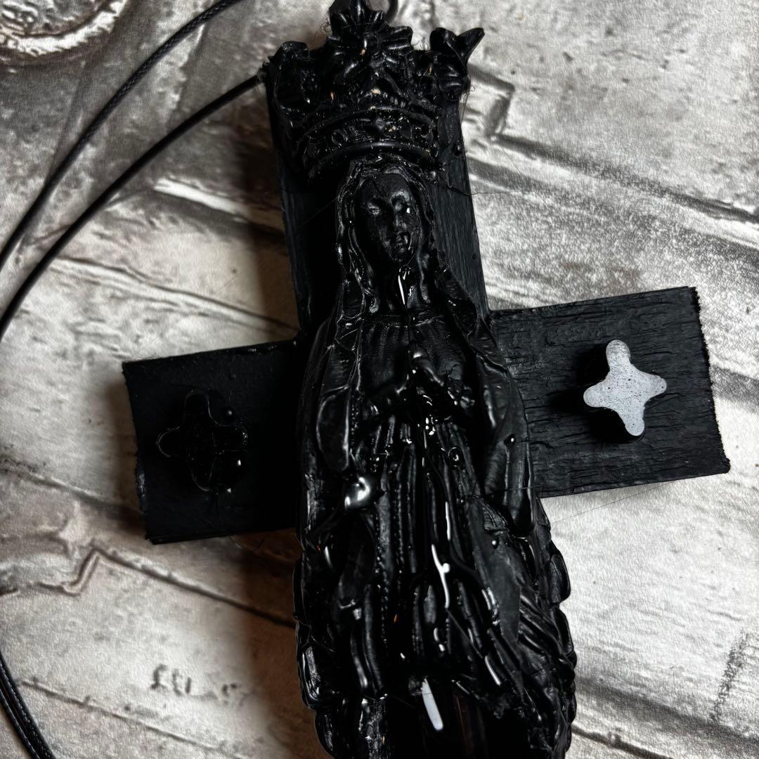 【一点物アクセサリー】漆黒のマリア像血瓶 十字架ネックレス