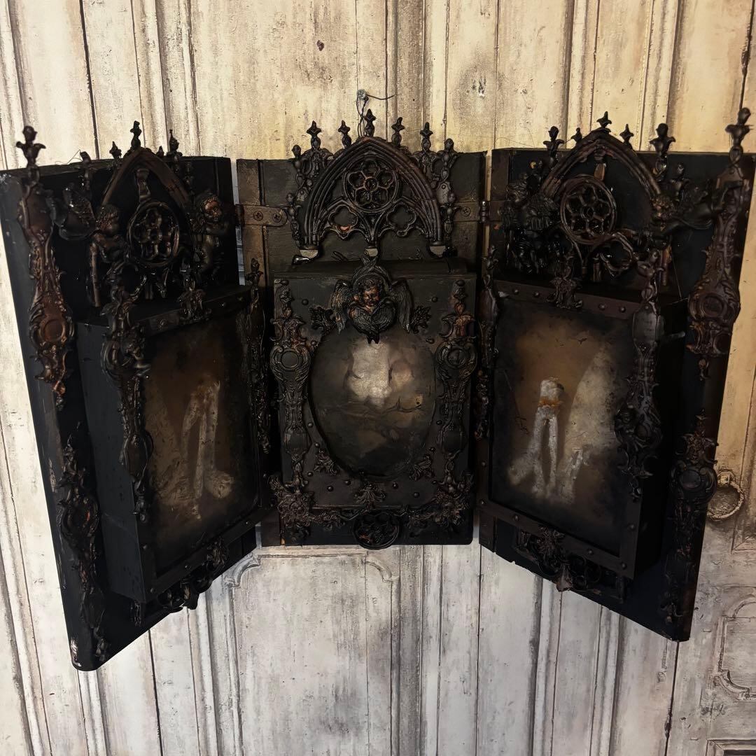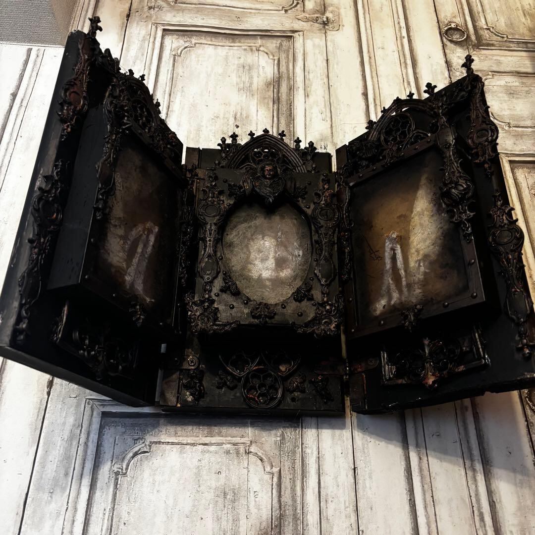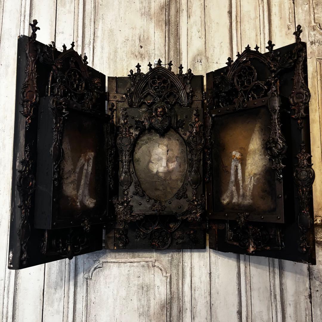 重厚なゴシック建築の意匠を凝縮した、漆黒の三面祭壇画。