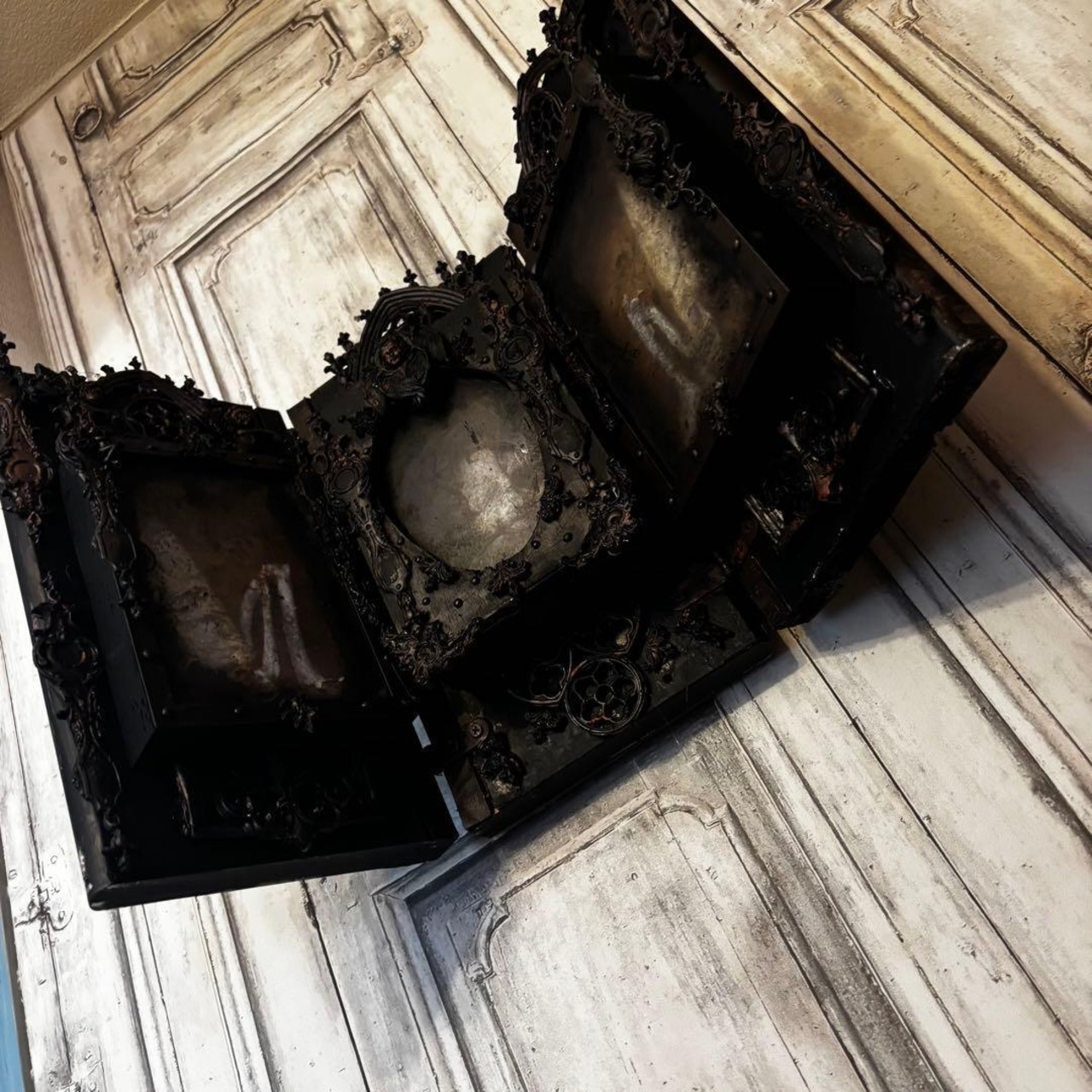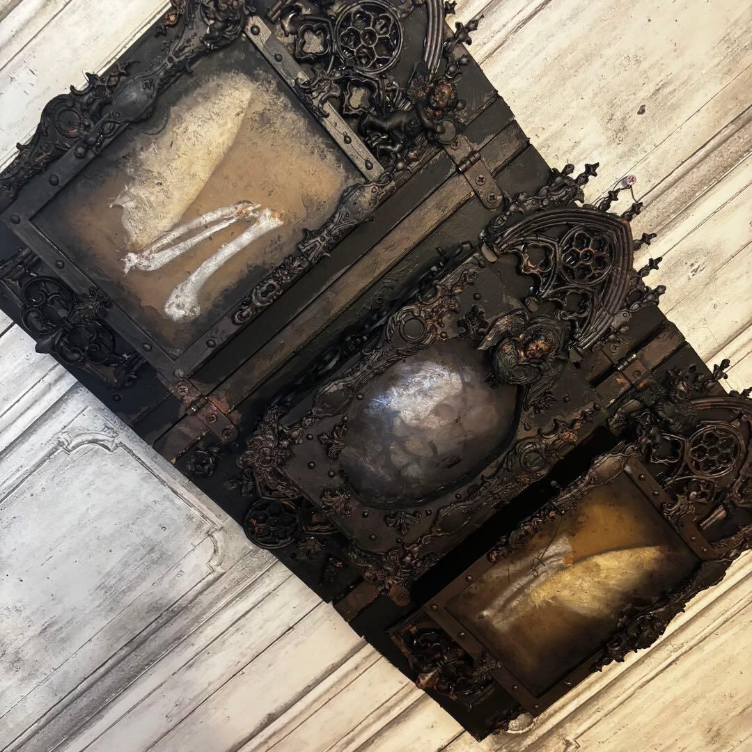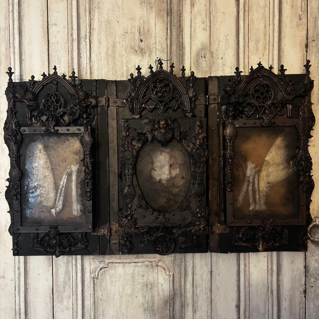 重厚なゴシック建築の意匠を凝縮した、漆黒の三面祭壇画。