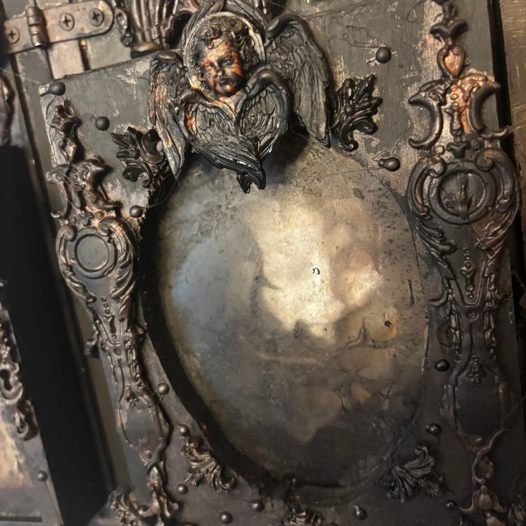 中央には静謐な表情を浮かべる天使のレリーフが鎮座し、左右の扉を開くことで、語られることのない秘められた聖域が姿を現します。