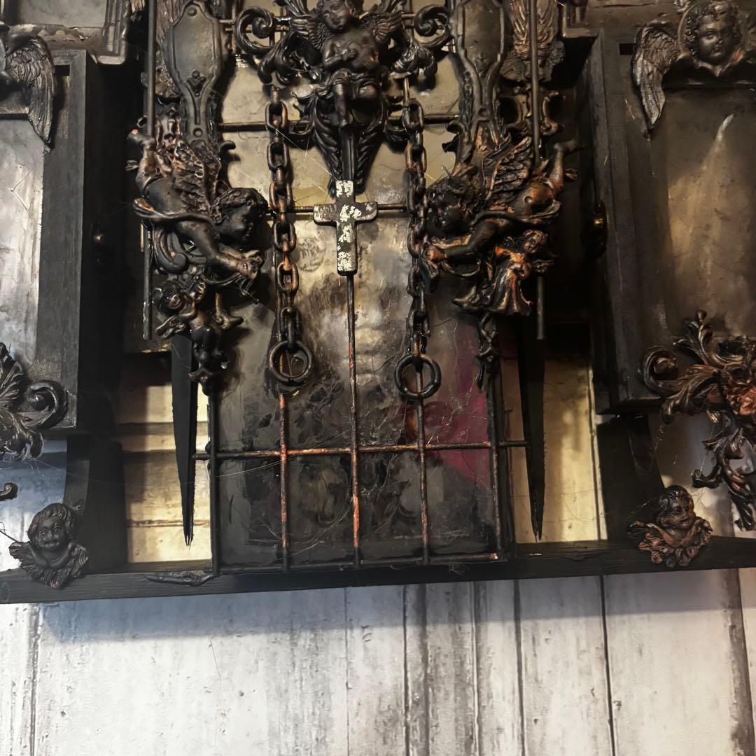 中央には静謐な表情を浮かべる天使のレリーフが鎮座し、左右の扉を開くことで、語られることのない秘められた聖域が姿を現します。