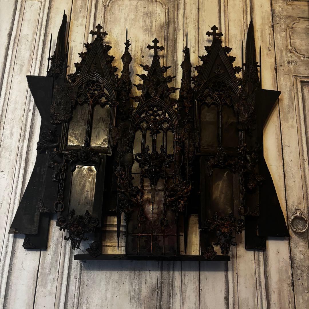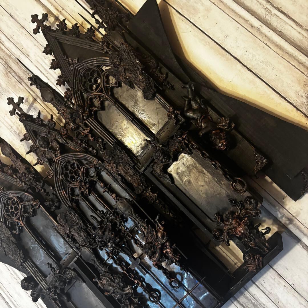 長い年月を経て廃墟に遺された祭壇のような、煤けた質感と複雑な装飾。退廃的(デカダン)でありながら、どこか救いを感じさせるような、ダークファンタジーの世界観を具現化しています。