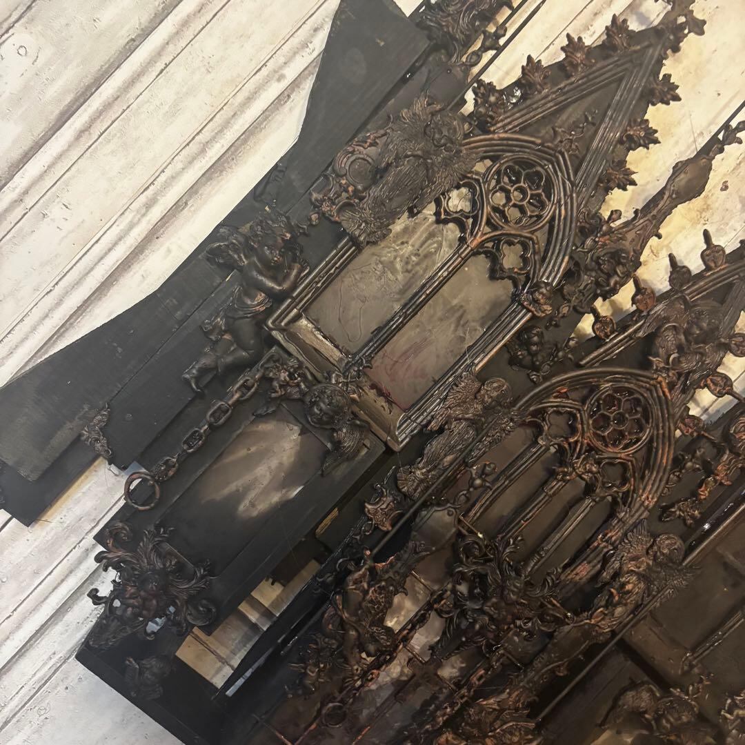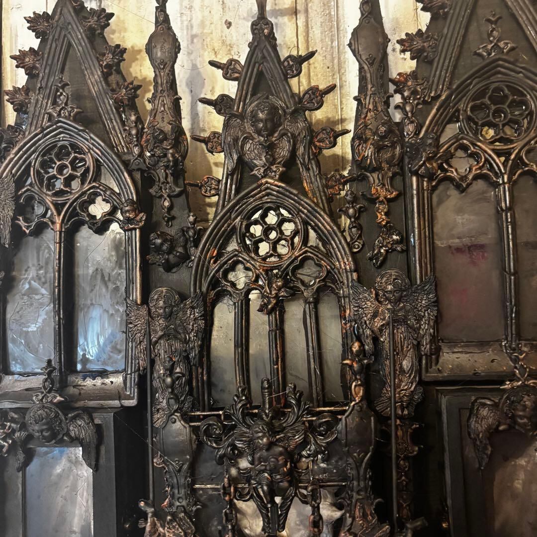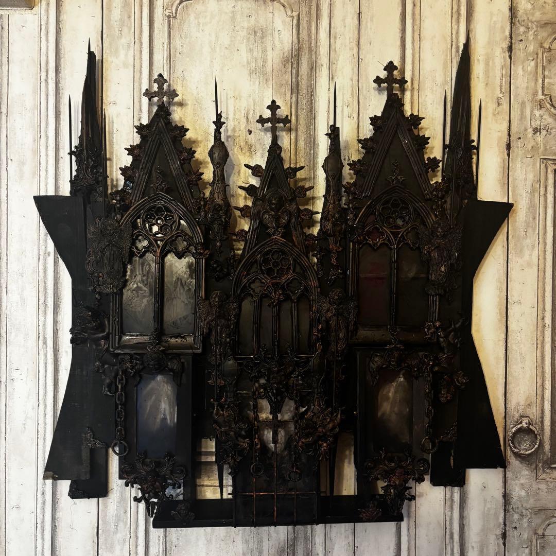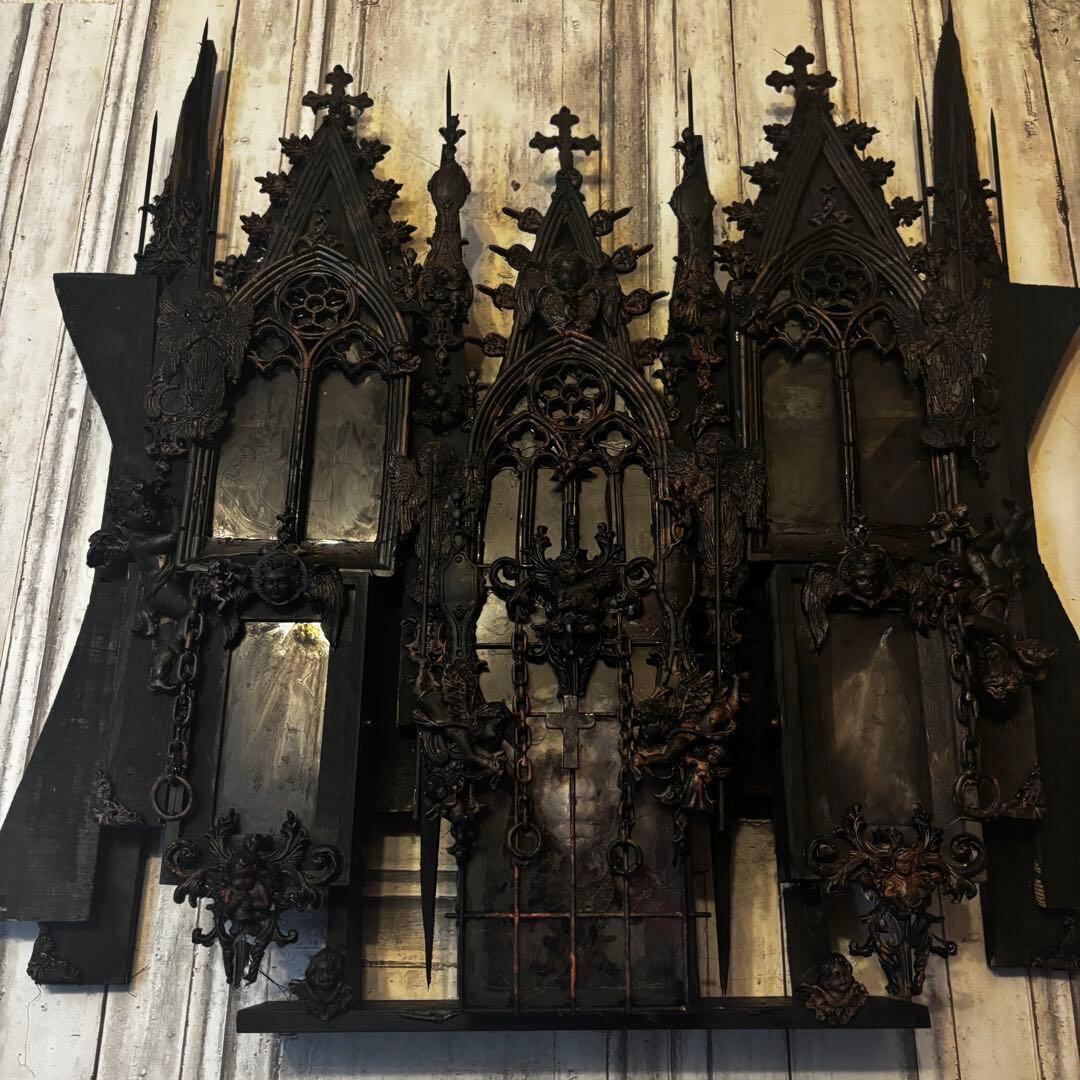 重厚なゴシック建築の意匠を凝縮した、漆黒天使教会画。
