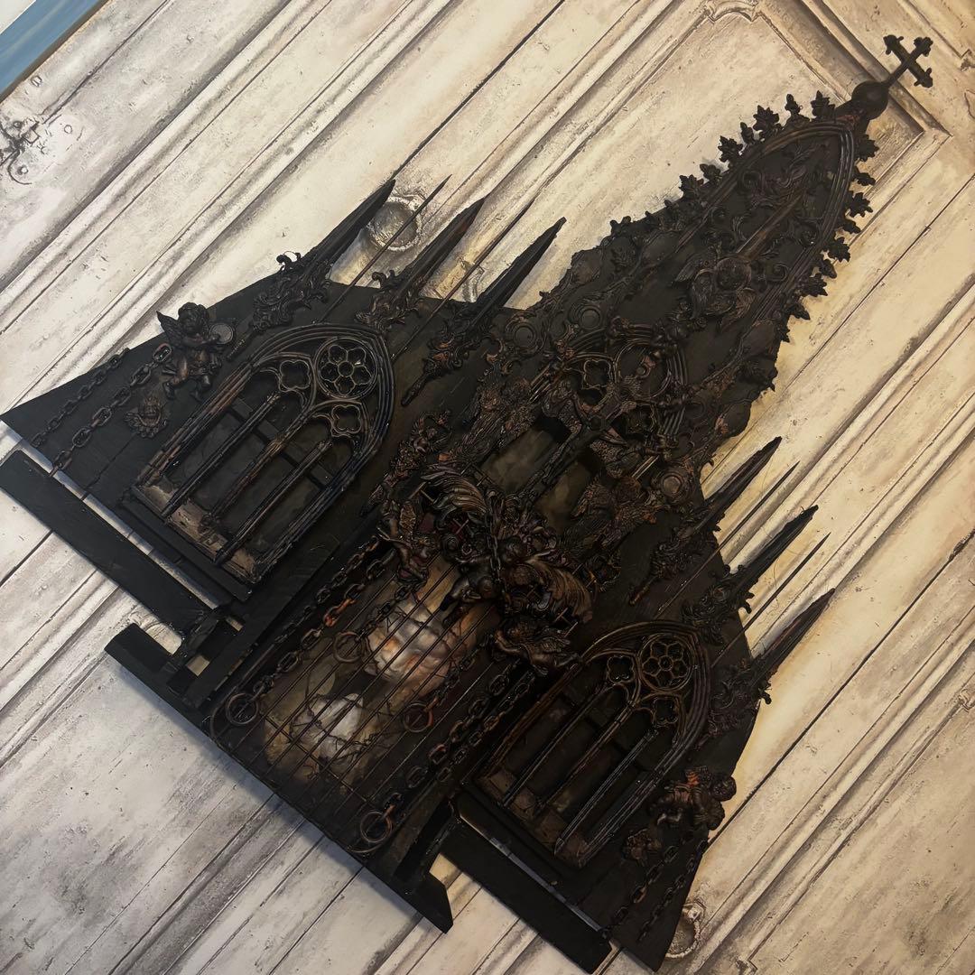 長い年月を経て廃墟に遺された祭壇のような、煤けた質感と複雑な装飾。退廃的(デカダン)でありながら、どこか救いを感じさせるような、ダークファンタジーの世界観を具現化しています。